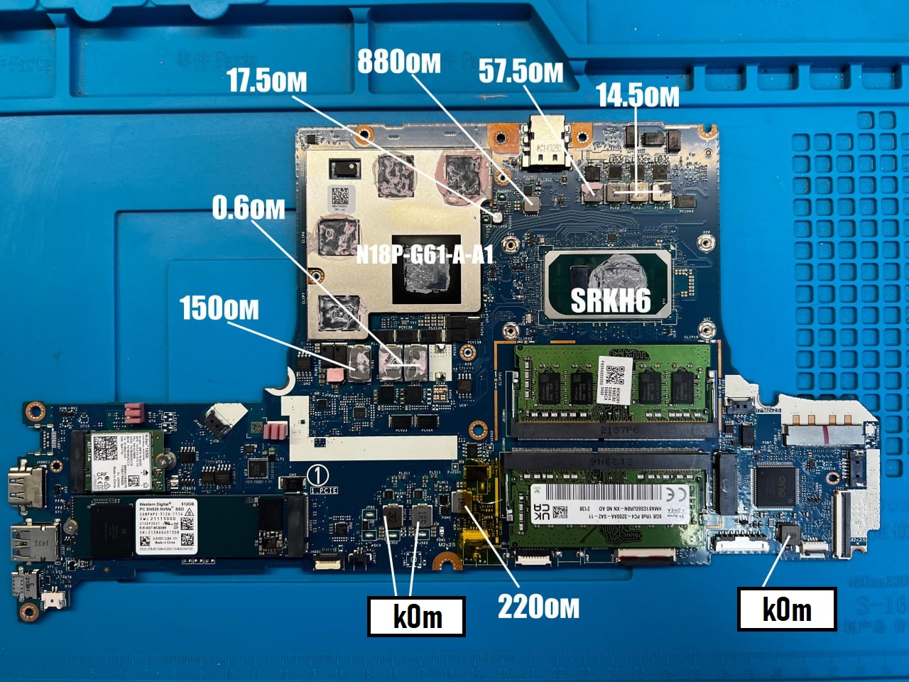 Poprawne oporności Acer Nitro 5 AN517-53 GH52T LA-L051P SRKH6 i5-11300H N18P-G61-A-A1 GTX1650\